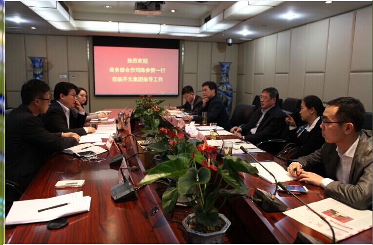 3月23日,商務部合作司陳林參贊在合作司境外合作處處長陳忠、黃小玲,中國機電產品進出口商會投資促進部主任盛國飛的陪同下,蒞臨開元集團總部指導工作,集團副董事長何永平攜相關部門、人員對陳參贊一行的到來表示了最熱烈的歡迎,并對開元集團的發展和規劃進行了詳細匯報。