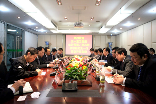 11月21日上午,集團董事長、總裁趙思儉在集團總部會議室親切會見了來訪的三一重工集團執行董事、副總裁匡蒼豪一行。