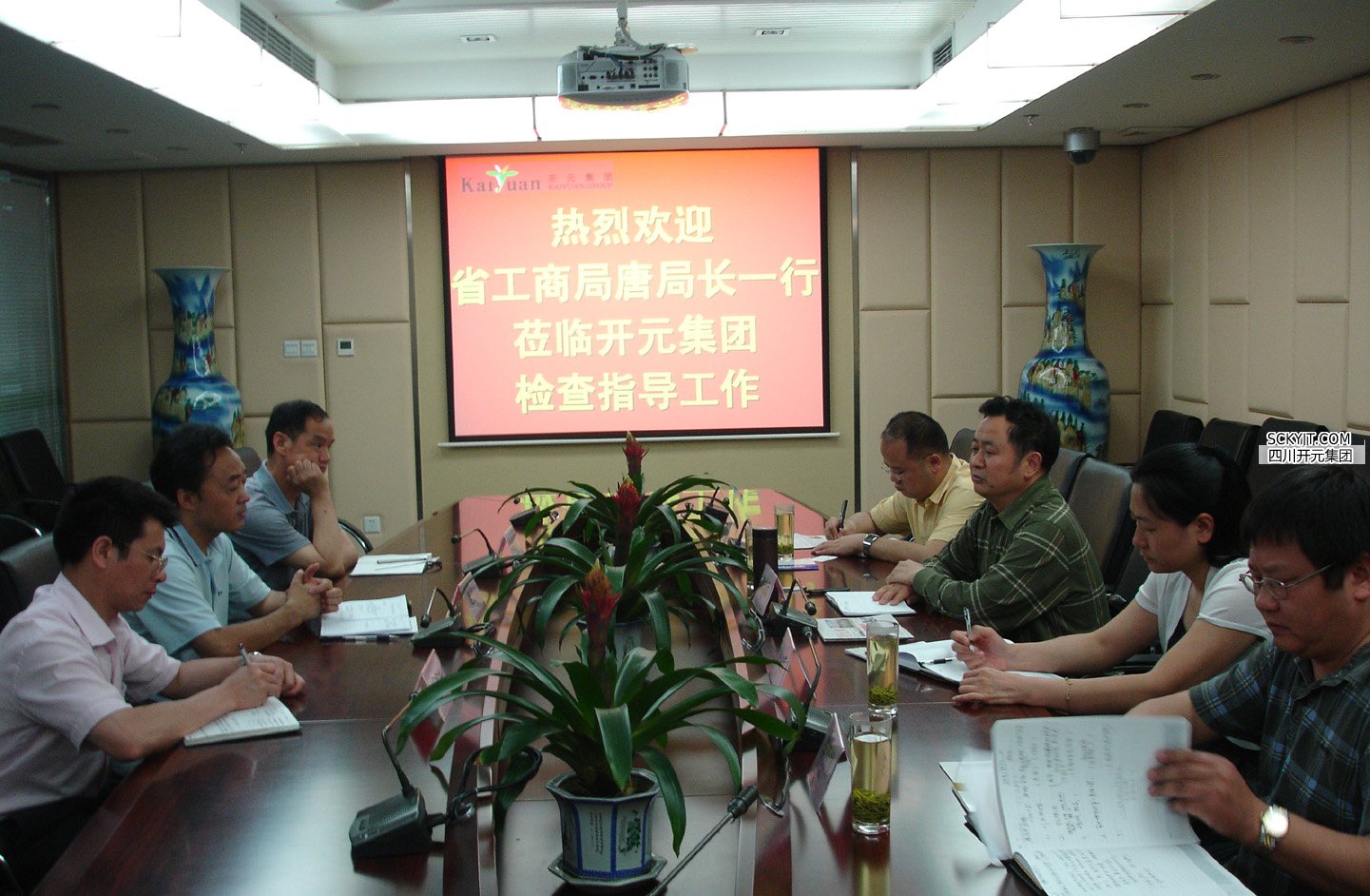 本網訊 5月5日,四川省工商局直屬一分局局長唐成遠一行4人到集團考察調研。集團董事長、總裁趙思儉,副總裁古德福等在三樓會議室向唐局長一行匯報了集團近期的工作情況。