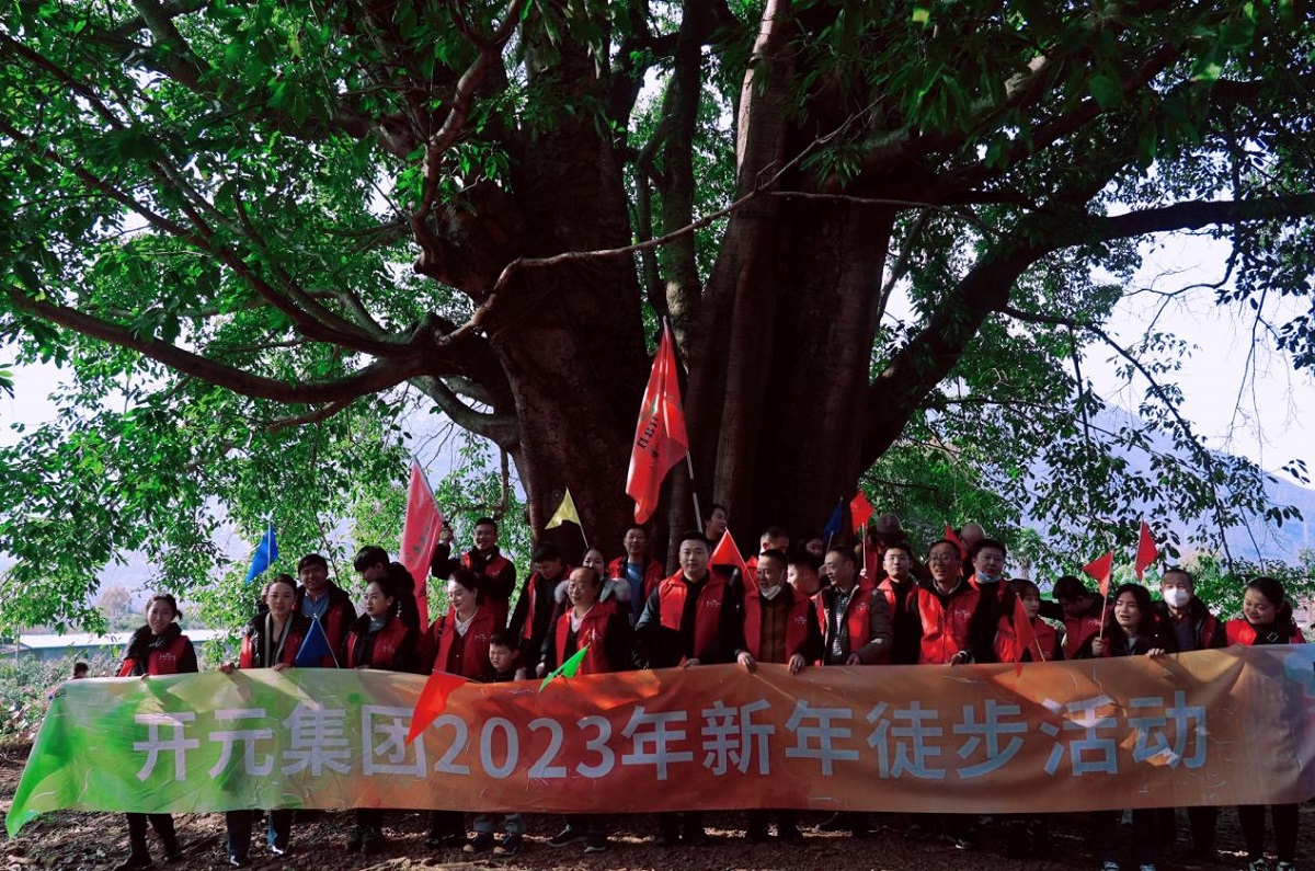 新年徒步活動于?;蠝峡诔霭l,200余人的徒步隊伍彩旗招展,整裝待發。